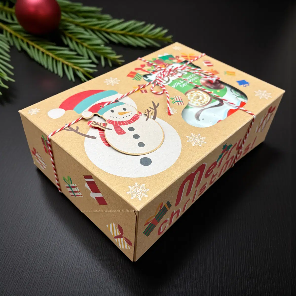 Karácsonyi ajándék doboz – átlátszó hóemberes (22x15x7 cm): 1db