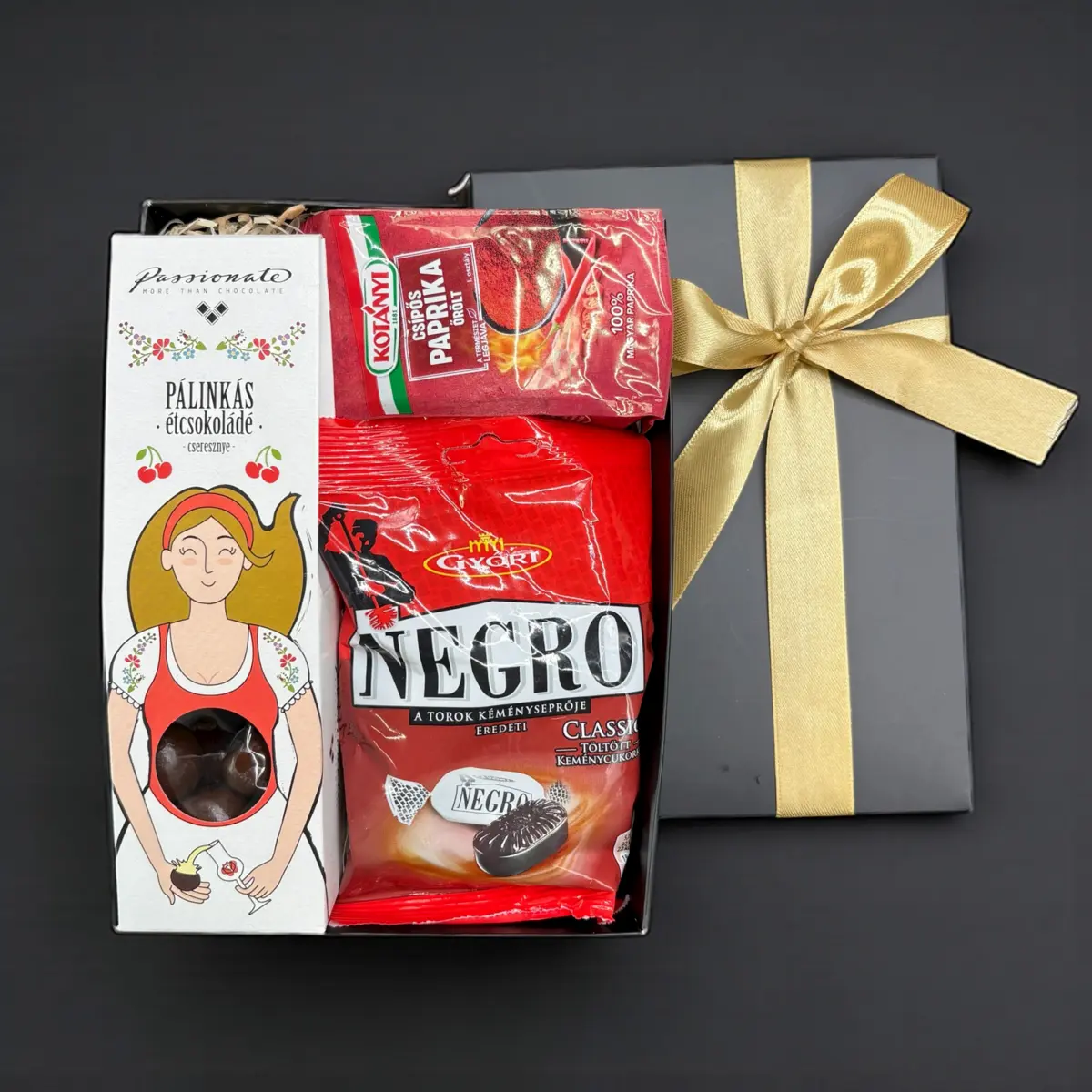 Fedeles fekete ajándékdoboz – választható masnival (21,5×15,5×4 cm): 1db