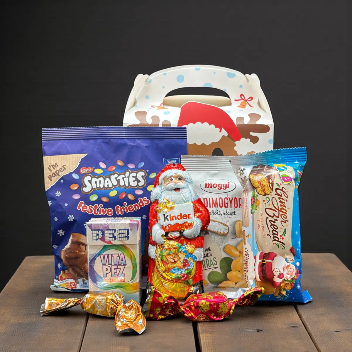 Mikulás doboz szarvasos mintával (16x17x9,5 cm): 1db