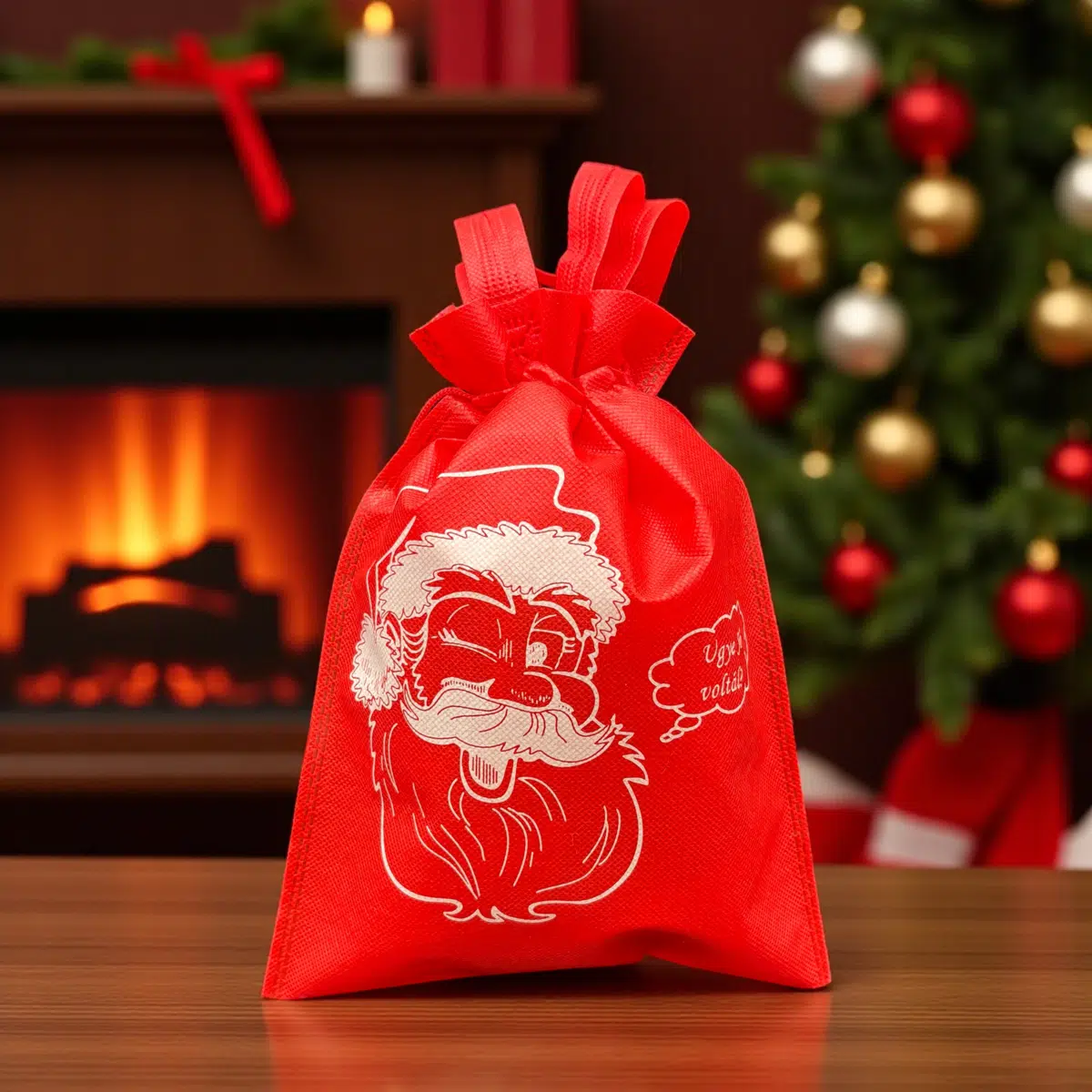 Vászon Mikulás zsák – vegyes mintával (29×21 cm): 1db